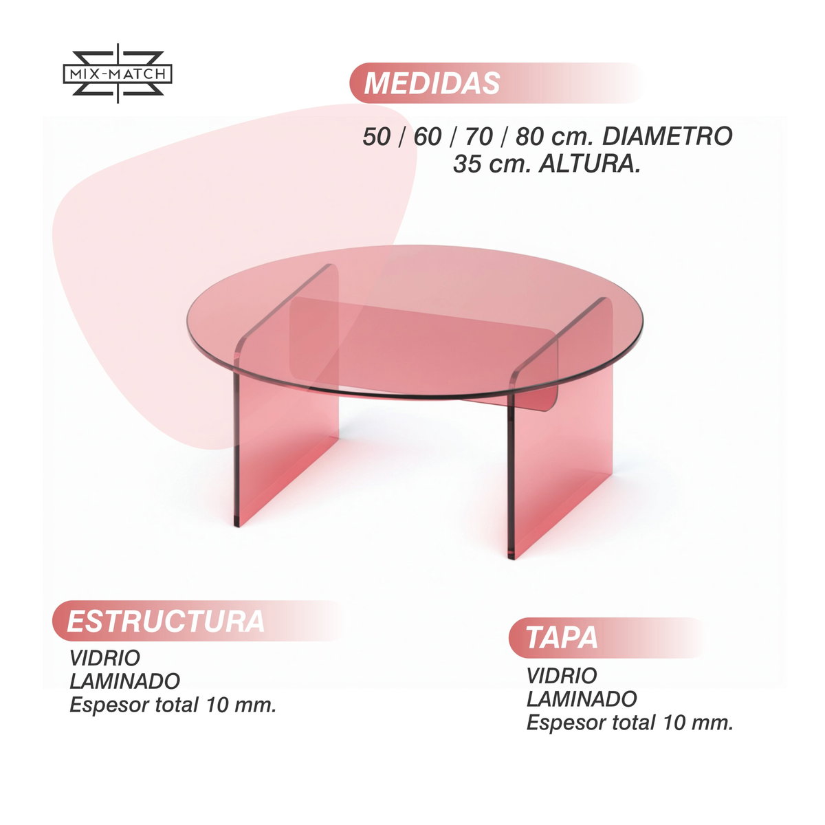 Mesa Baja hecha integramente en vidrio con bordes pulidos - Colores a elección - Consultar por otras alturas.