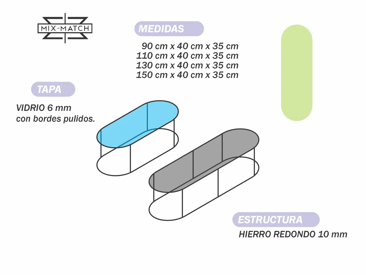 Mesa de vidrio con base de hierro macizo - Pintura epoxi horneada - Colores a elección - Opción cromado.