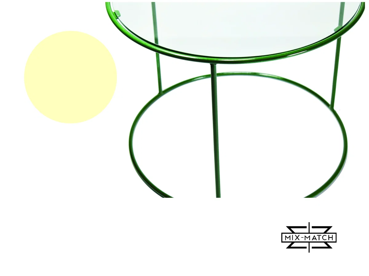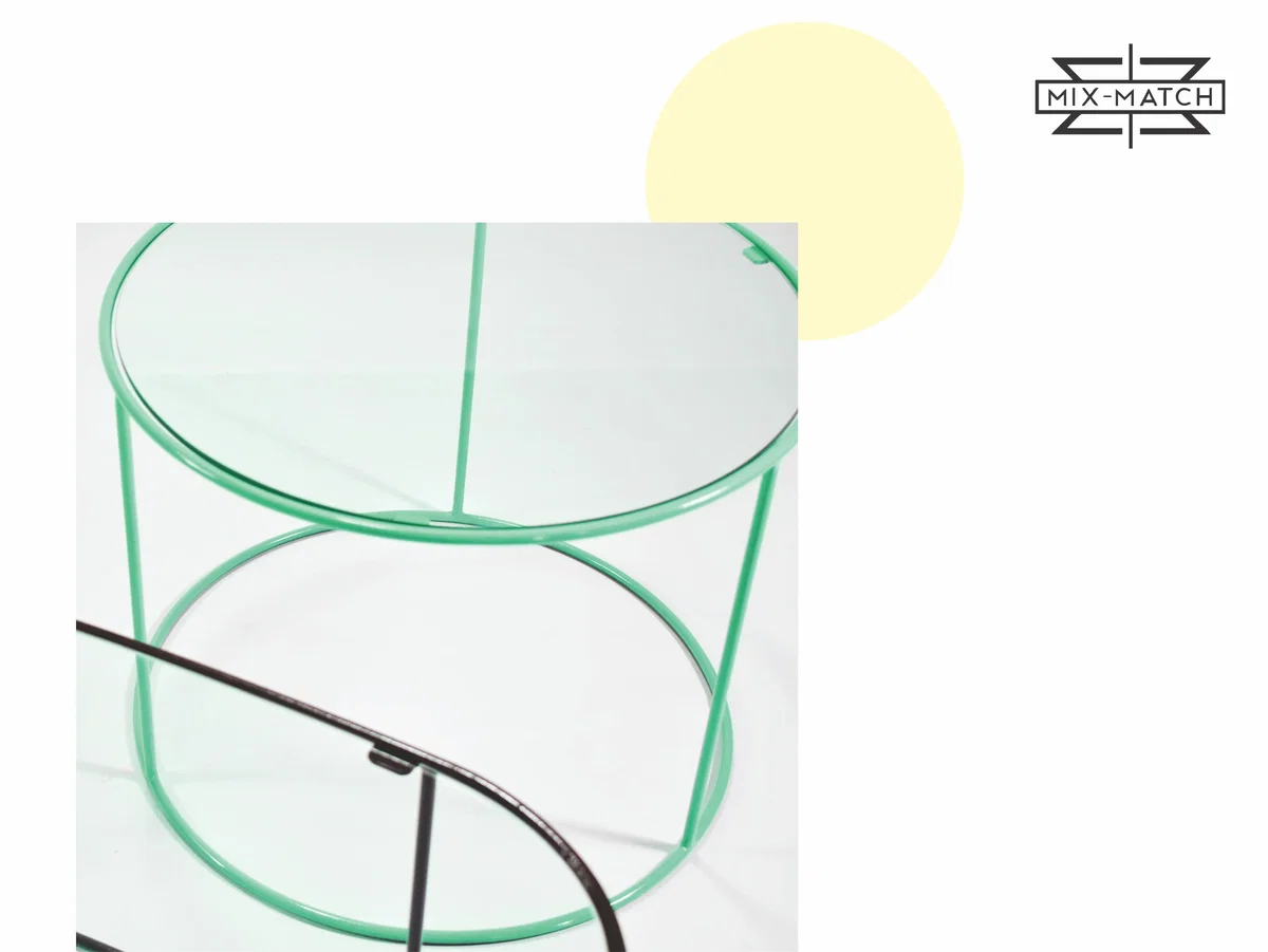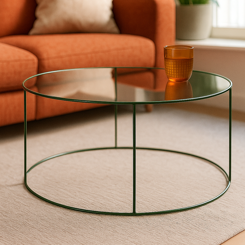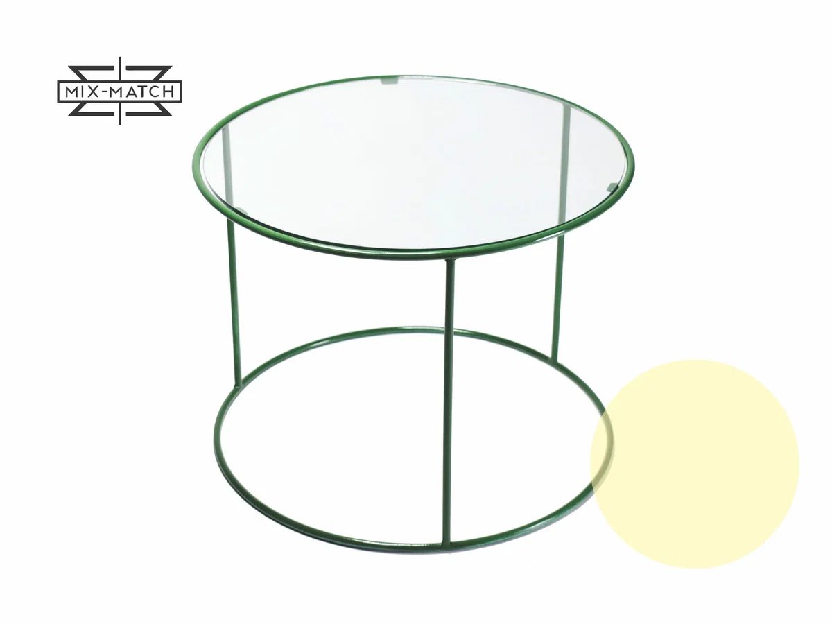 Mesa de vidrio con base de hierro macizo - Pintura epoxi horneada - Colores a elección - Opción cromado.