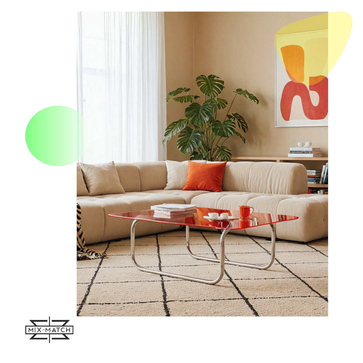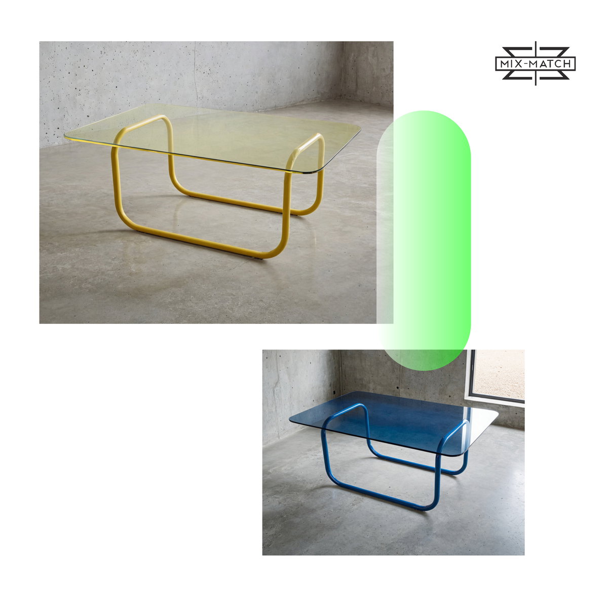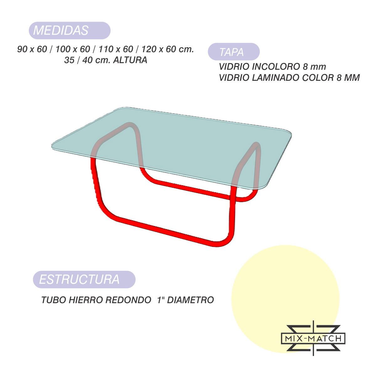 Mesa baja con base de hierro y tapa de vidro de 8mm con bordes pulidos - Colores a elección