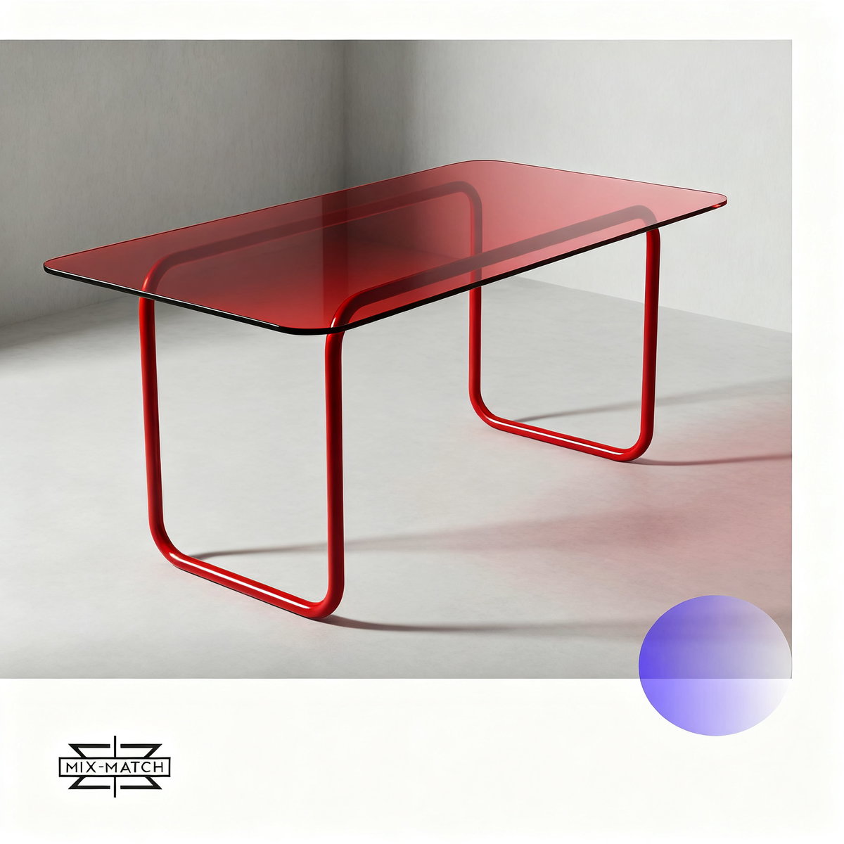 Mesa con base de hierro y tapa de vidro de 10mm con bordes pulidos - Colores a elección