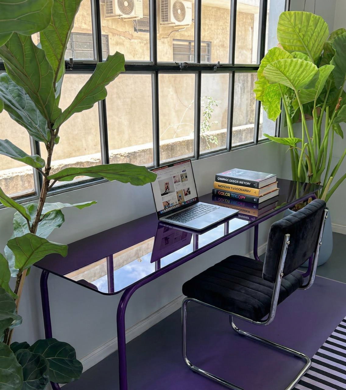 Escritorio con base de hierro y tapa de vidro de 10mm con bordes pulidos - Colores a elección